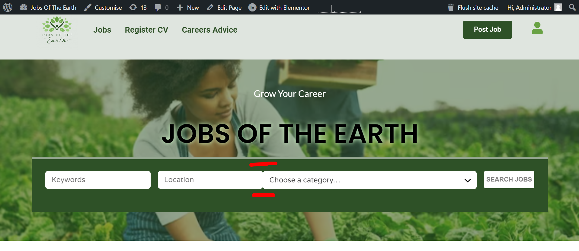 On the Hero Section of my website, I tried using the Job search widget, but it doesn't align properly and hence, I can't finish up with my work. I use the elementor page builder So I sought your help in fixing the issue. Attached is an example of what I'm talking about. Thank You.